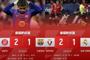 本轮西甲,皇马在客场1-2遭奥萨苏纳绝杀,巴萨获得机会实现超分。