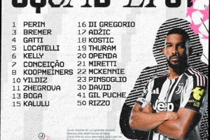 尤文欧冠大名单:伊尔迪兹、麦肯尼、布雷默领衔 DV9、霍尔姆缺阵