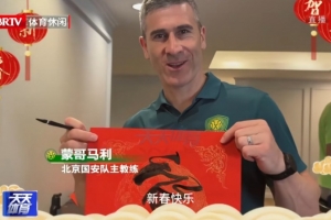 北京国安将帅用写福字的方式向所有支持热爱他们的球迷送上祝福,一起喜迎马年新春。其中国安主帅蒙哥马利还用中文给大家拜年,“新春快乐”。