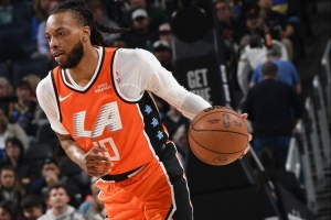 上半场,快船后卫加兰迎来首秀但表现不理想,替补12分钟24秒三分3投1中,罚球2中2拿到5分1助攻,有3次失误,正负值-11。